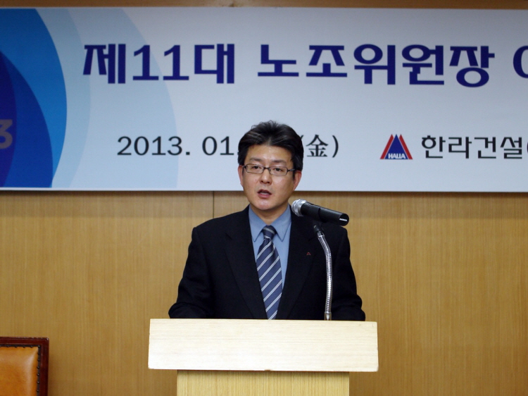 최병수 사장은 축사를 통해 “조합원들의 회사 사랑, 헌신적 노고에 깊은 감사를 드리며, 노사간 서로 이야기를 충분히 듣고 양보와 배려 설득을 통해 공감하고 이해하고 합의하는, 진정한 소통의 모습이 될 수 있도록 회사에서도 조합과 함께 노력을 할 것이고, 어려움이 있지만 자신감과 신념을 갖고 One Body로 미래를 향해 가자”고 말하며 축사를 마쳤다.