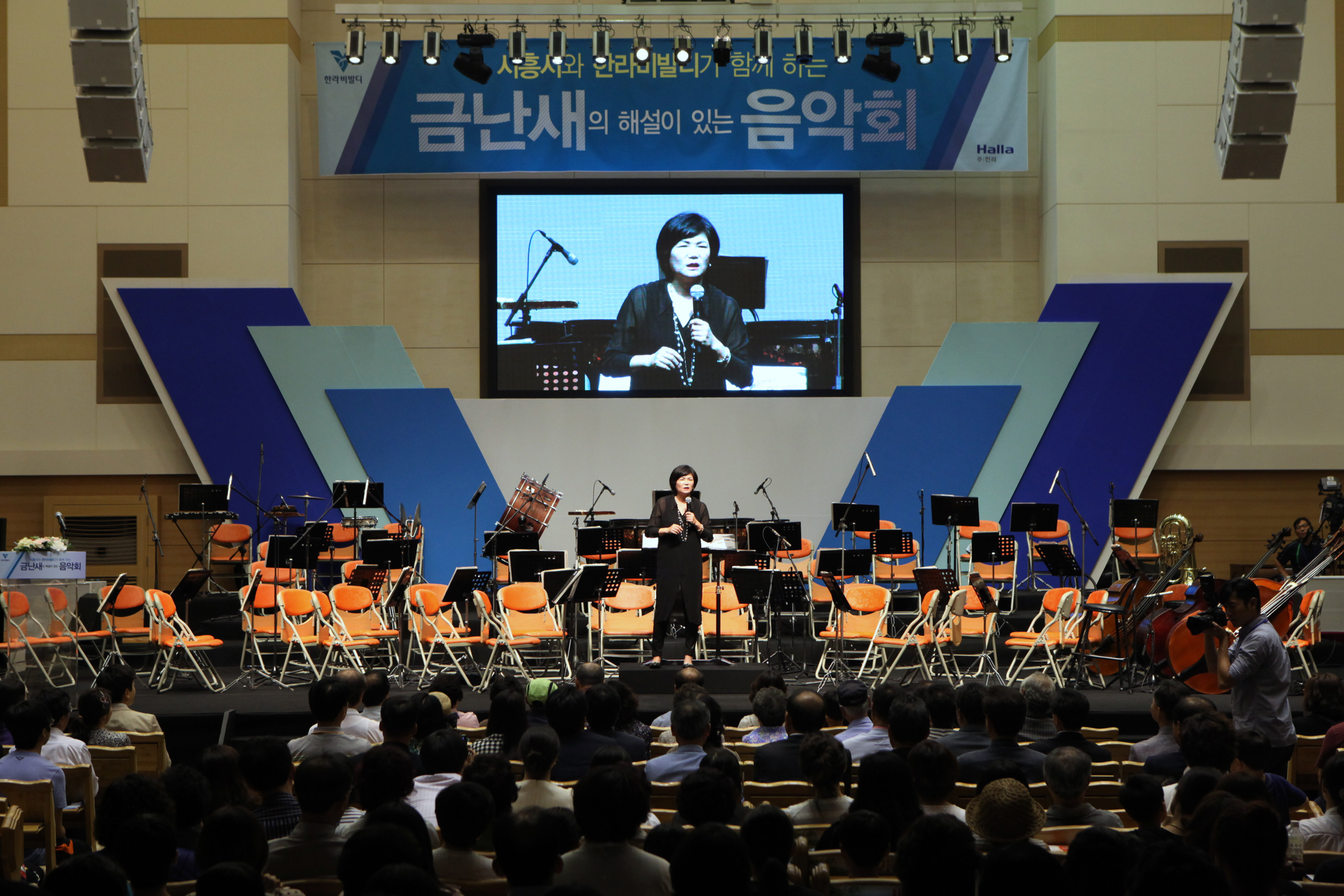 지난 15일, (주)한라가 주관하고 시흥시와 시흥시의회의 후원으로 개최된 ‘금난새의 해설이 있는 음악회’가 관람객 2,000여명이 몰리며 성황리에 막을 내렸다. 이 행사는 8.15 광복절을 맞아 애국지사들의 숭고한 애국정신을 기리고 광복의 의미를 다시 한 번 되새기고자 마련된 행사다. 아울러 동시에 시흥 배곧신도시 내에 서울대 시흥캠퍼스와 대규모 교육특화 주거단지를 조성하는 지역특성화 사업의 성공적인 추진을 기원하고자 마련되었다. 음악회는 15일 오후 4시부터 약 2시간반 가량, 시흥시 은행로에 위치한 ‘사랑스러운 교회’에서 진행됐다. 정몽원 회장, 최병수 사장과 김윤식 시흥시장 등의 관계자들을 비롯해 8.15 광복절을 맞아 독립유공자 유가족이 참석했으며 (주)한라에서 준비한 행운의 열쇠 전달이 있었다. 음악회에 앞서 스타강사 김미경씨가 ‘서울대 보내는 참교육은 가족사랑’이란 주제의 강연을 특유의 재치 있는 입담으로 풀어 내 분위기를 달구기도 했다. 이날 ‘금난새의 해설이 있는 음악회’에는 지휘자 금난새의 명품 음악회를 보기 위해 인근주민들은 물론, 가까운 인천주민과 오이도에 나들이 나온 인파들까지 더해져 기존 마련된 1600석의 자리는 일찌감치 만석이 되었으며 서서 감상하는 시민들까지 약 2천여명의 관람객들이 몰리며 성황을 이뤘다.