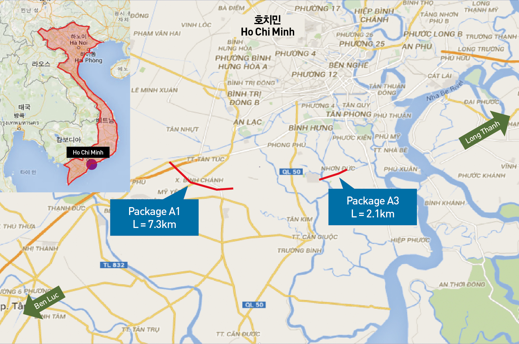 당사는 ‘Ben Luc - Long Thanh Expressway Development Package 1, 3’공사를 수주했다. Package 1의 위치는 호치민시로부터 서남쪽으로 20km 지점이며 총 연장 7.3km이고, Package 3의 위치는 호치민시로부터 남쪽 23km지점이며 총 연장 2.1km이다. 발주처는 VEC(Vietnam Expressway Corporation이다. 공사기간은 착공일로부터 36개월이고 수주금액은 USD 105.2 Mil이며 (VAT포함, 당사분 51%)이다.